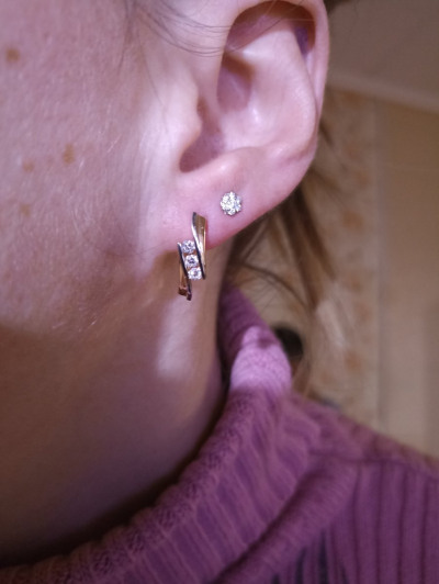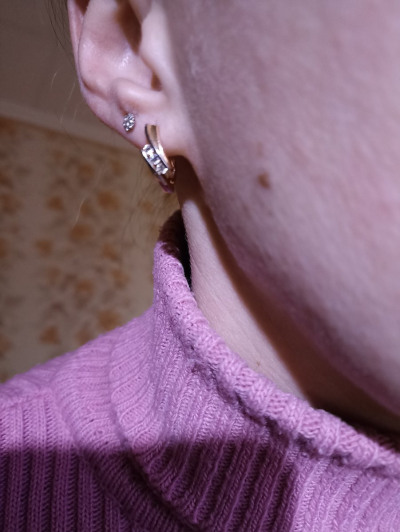 Серьги очень изысканные, элегантные! У меня маленькая мочка, от этого вся красота оказывается под мочкой, но всё равно не теряются! Можно носить разными сторонами к ушку.
