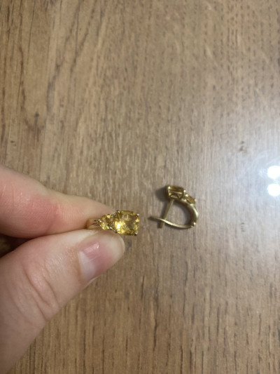 Солнечные цитрины в оправе из желтого золота смотрятся особенно ярко и гармонично. Привлекла разнохарактерная форма и размер камней. Большой плюс, что главный камень располагается на мочке уха.