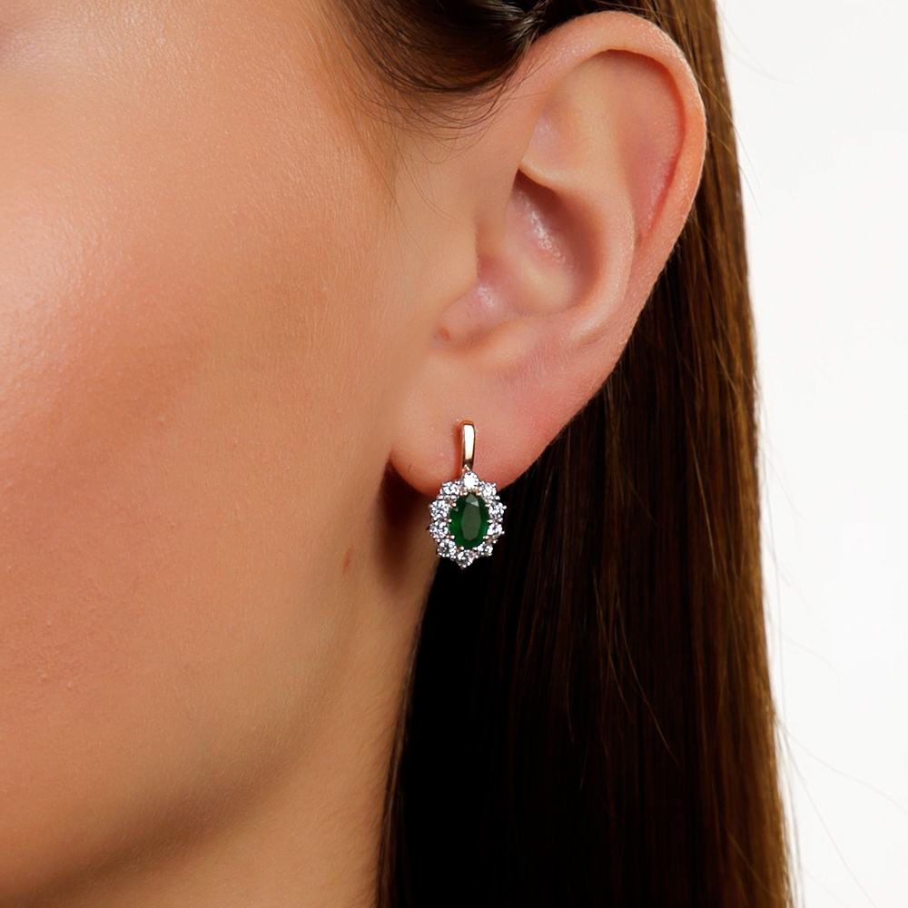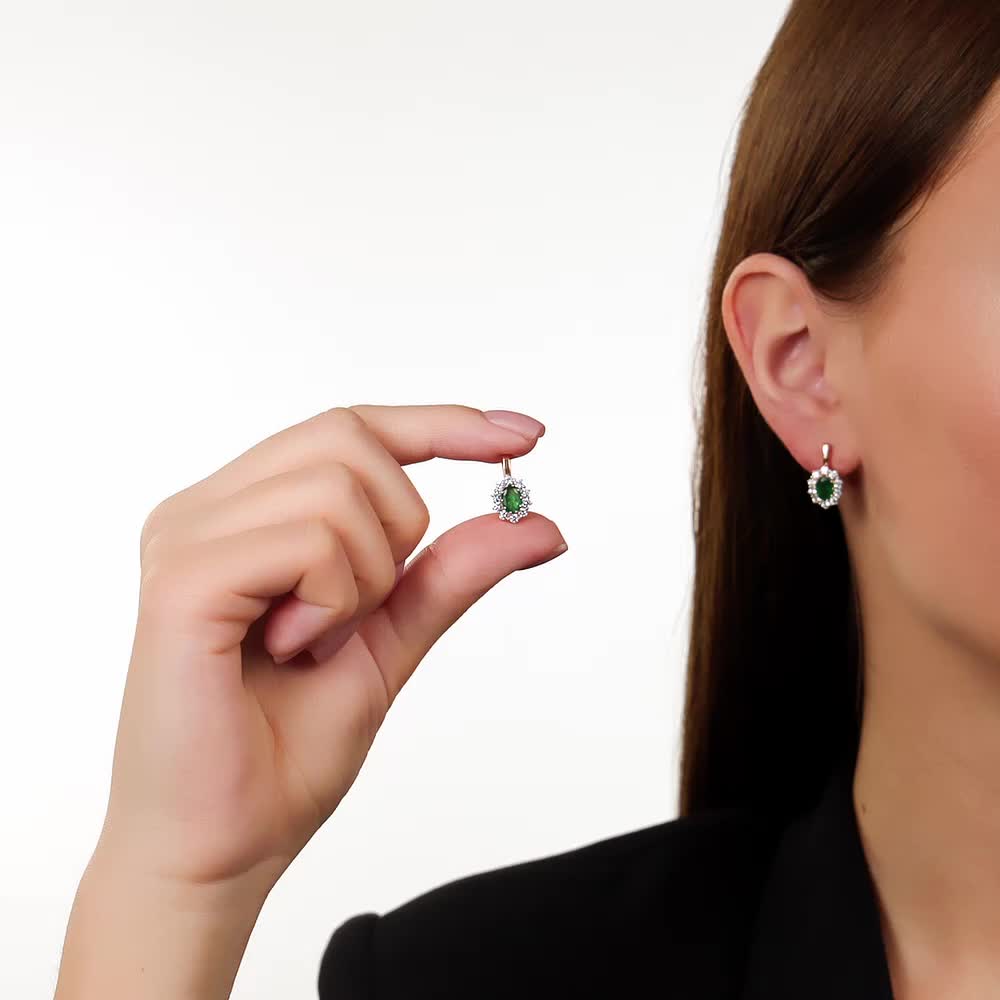Супруг подарил мне замечательные серьги, смотрятся превосходно, изумруд большой натуральный, брильянты сверкают, застёжка надежная, ношу радуюсь!