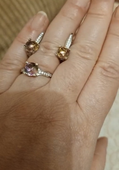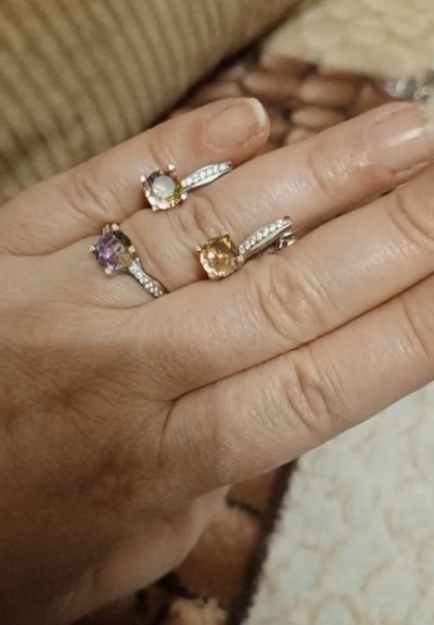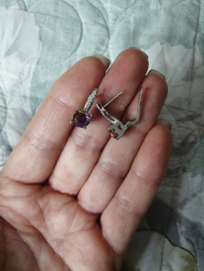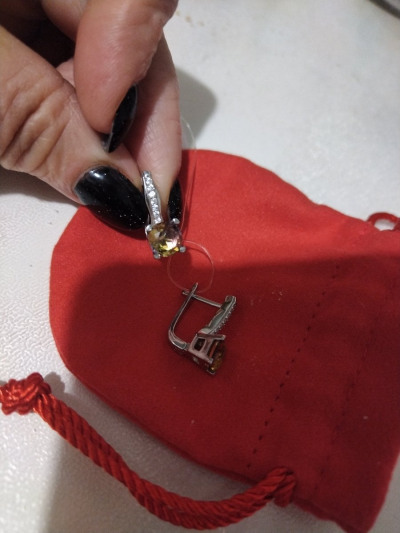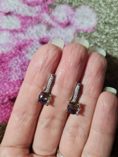 Шикарные серьги с аметриновыми фианитами, тяжеленькие 4,3 г. Камни переливаются разными цветами, покупкой довольна.