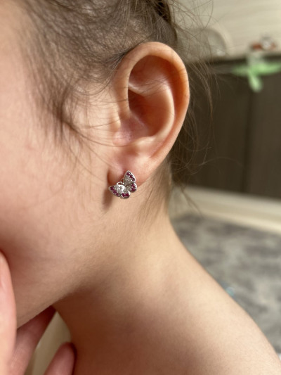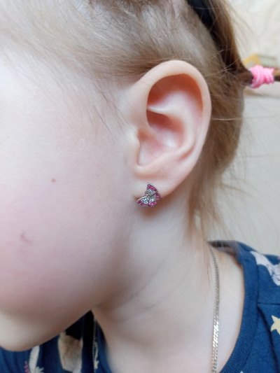 Купили младшенький дочке. На вид очень красивые. Ещё не одевали, так как пока не прокололи ушки.