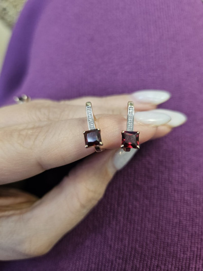 Золотые серьги с бриллиантами природными и гранатами природными