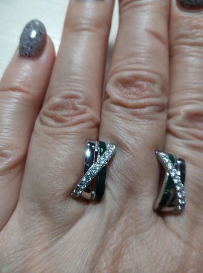 Красивые серьги с зелёной эмалью, смотрятся великолепно