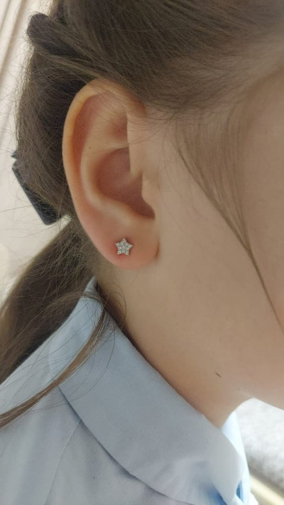 Сережки очень милые, нежные, для маленькой принцессы будет прекрасно смотреться. Аккуратные и застежка крепкая.