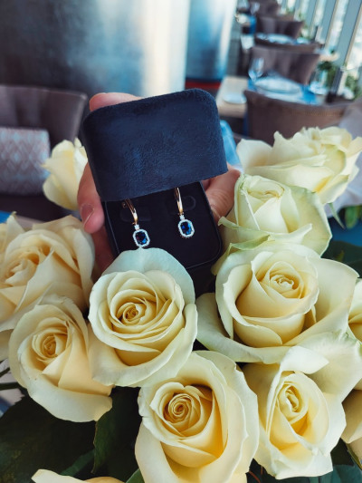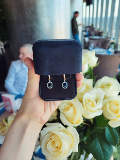 Подарок жене! Очень красивые серьги, смотряться очень дорого, привлекают внимания других, качество отличное, камень блестит, не описать словами их красоту! Словно из сказки! Невозможно не влюбиться!