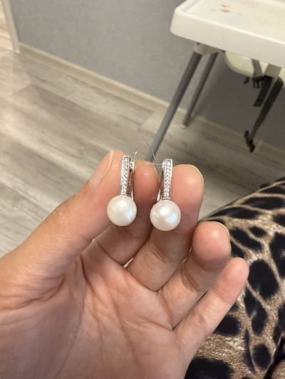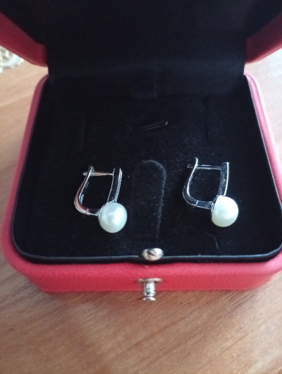 • Серьги, вставка: жемчуг пресноводный культивированный белый;