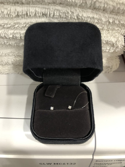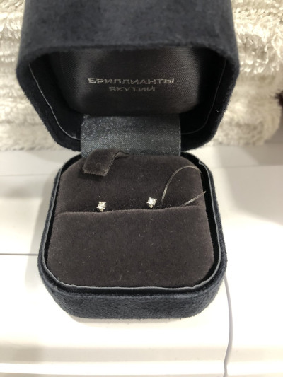 Серьги с 2 бриллиантами природными, 0.06 карат, огранка круг 57 граней, цвет 3, чистота 6, тип огранки А;