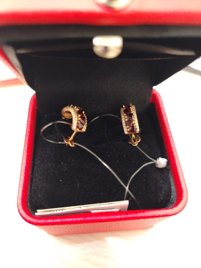 В редких случаях характеристики украшения или упаковка могут иметь отличия от представленных на фото или в описании.Серьги с 14 гранатами природными;