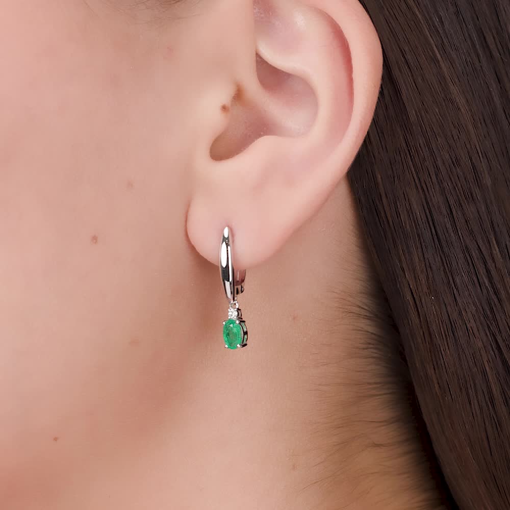Золотые серьги с бриллиантами природными и изумрудами природными
