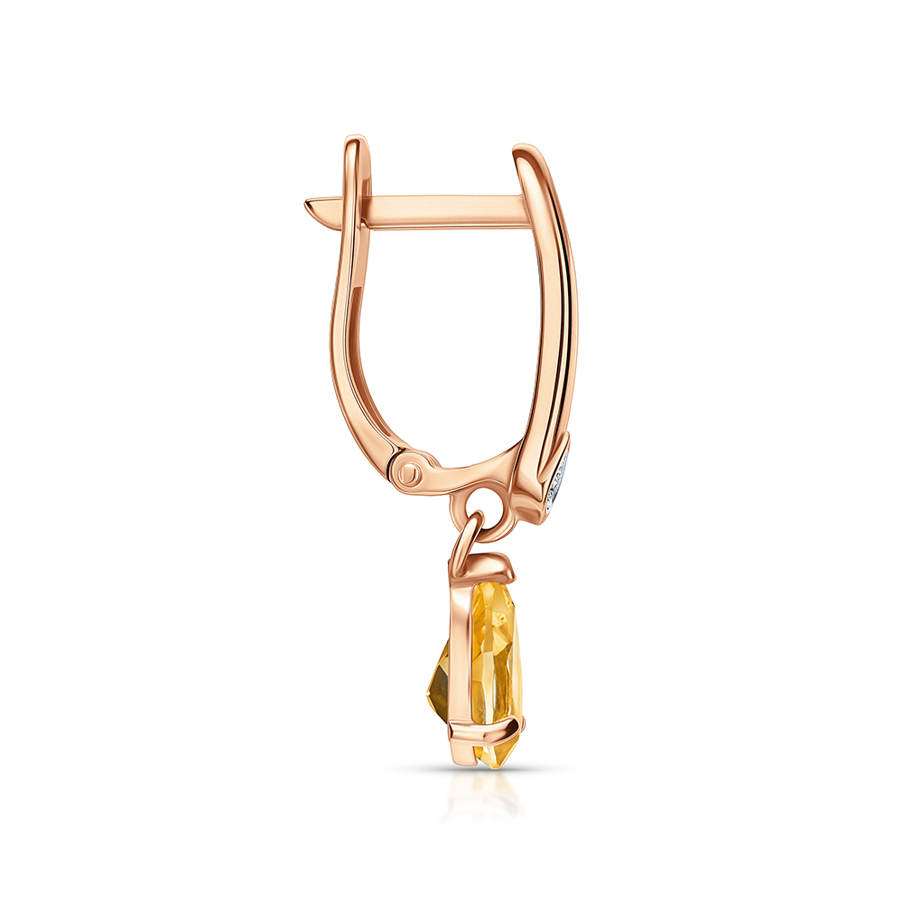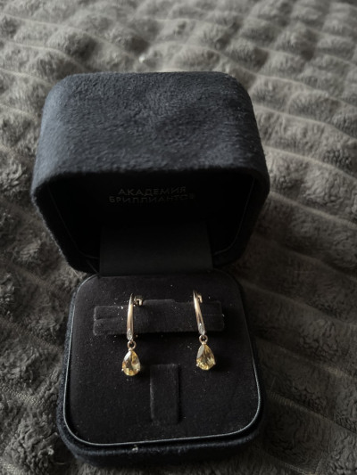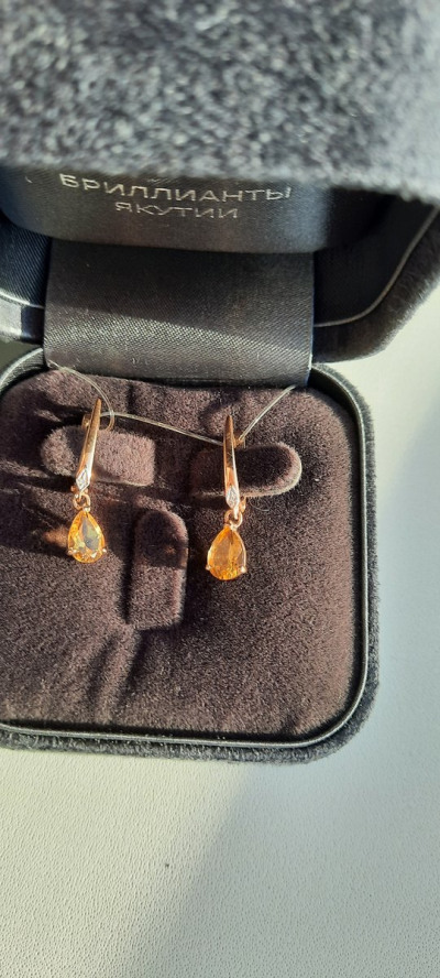 Золотые серьги с бриллиантами природными и цитринами природными