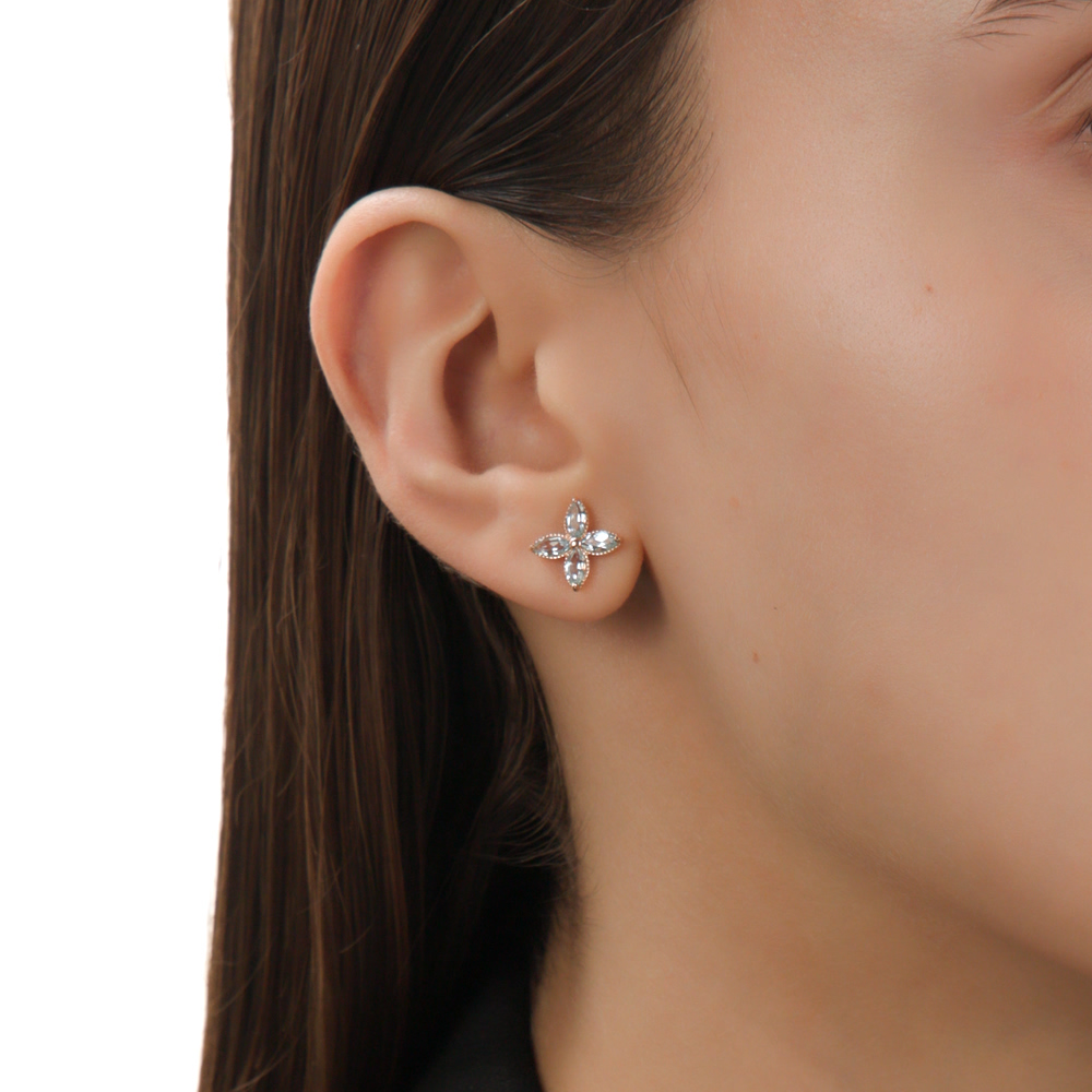В редких случаях характеристики украшения или упаковка могут иметь отличия от представленных на фото или в описании.Серьги с 8 топазами скай природными, 1.29 карат;