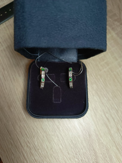 Золотые серьги с бриллиантами природными и изумрудами природными