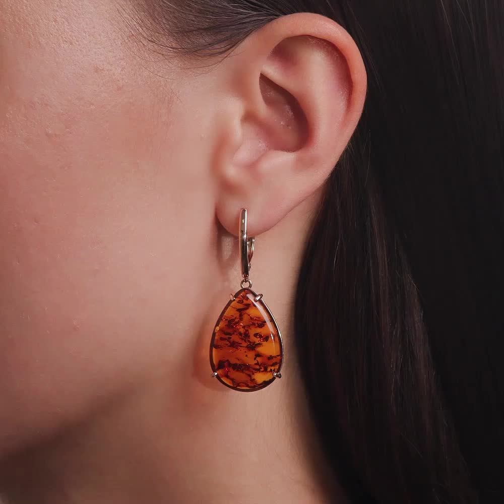 Золотые серьги с янтарем