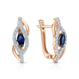 Золотые серьги с бриллиантами природными и сапфирами природными