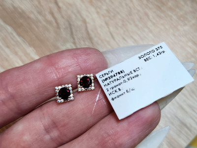 В редких случаях характеристики украшения или упаковка могут иметь отличия от представленных на фото или в описании.Серьги с 2 гранатами природными, тип огранки В;