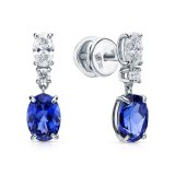 Золотые серьги с бриллиантами выращенными и сапфирами выращенными