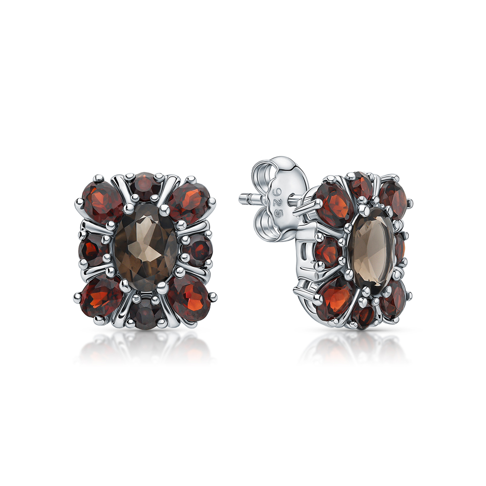 Серьги с 2 кварцами дымчатыми природными, 1.4 карат;
