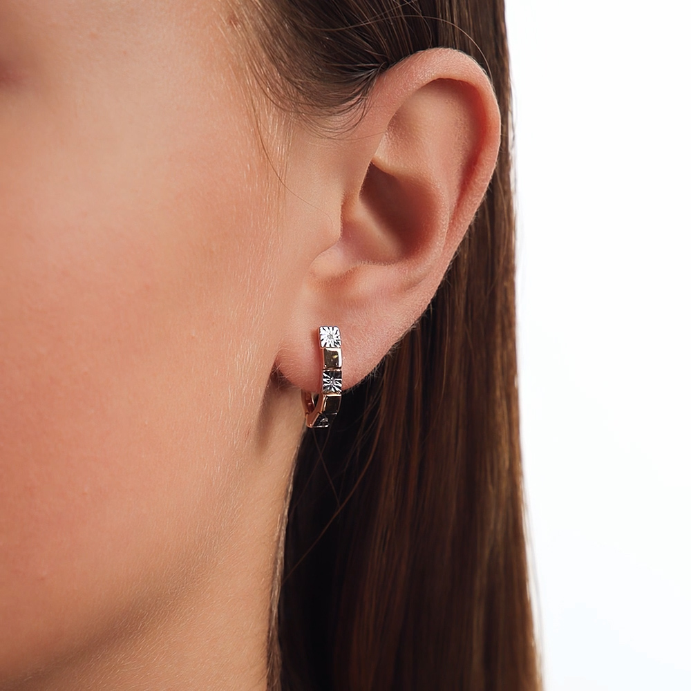 Серьги с 6 бриллиантами природными, 0.02 карат, огранка круг 17 граней, цвет 2, чистота 2, тип огранки А;