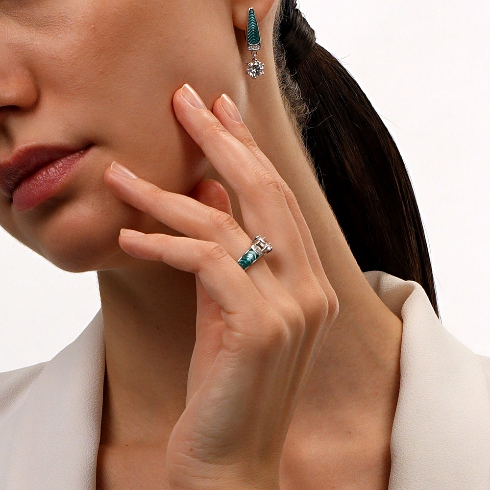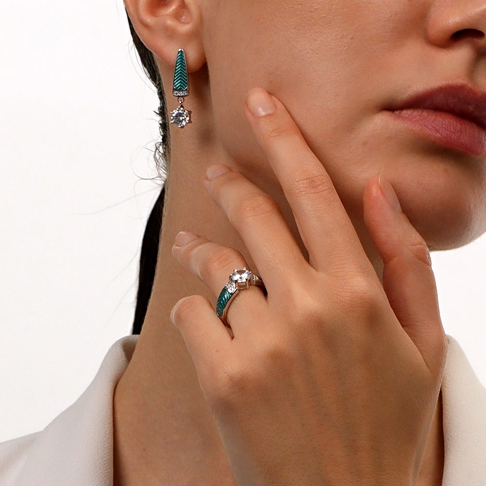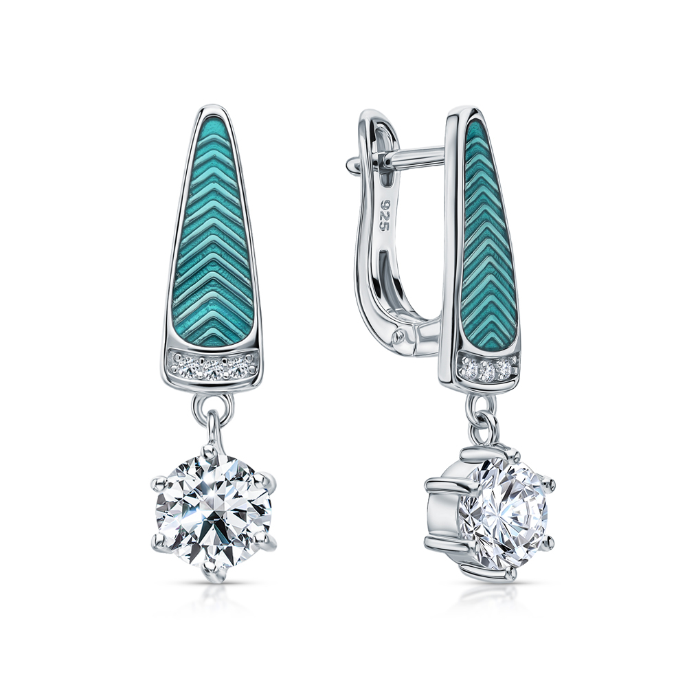 Серебряные серьги с эмалью и фианитами