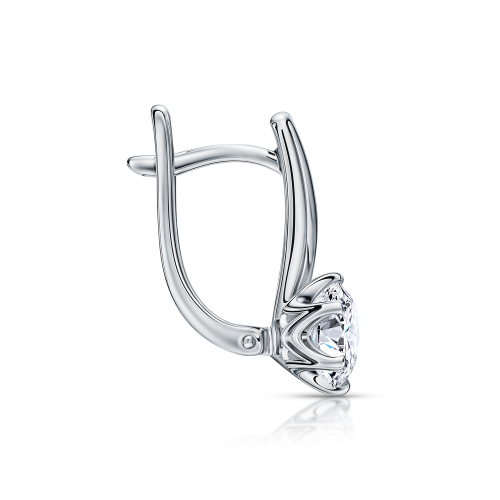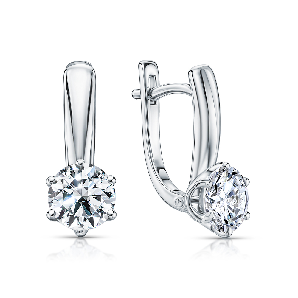 Серьги с 2 бриллиантами выращенными, 2.02 карат, огранка круг 57 граней, цвет 4, чистота 5, тип огранки А;