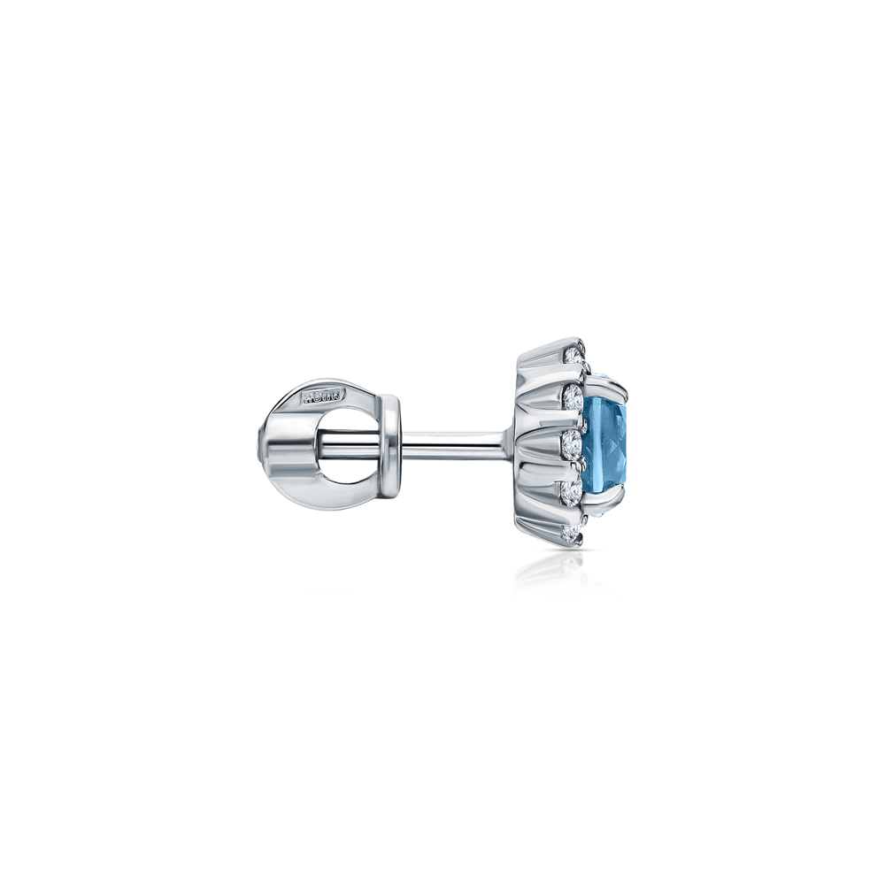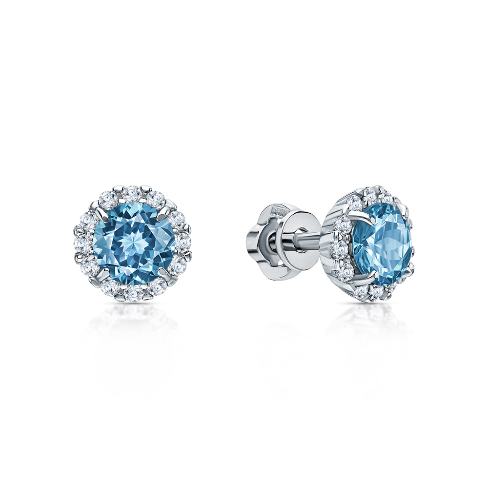 Серьги с 2 топазами скай природными, 1.2 карат;