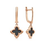 Серьги с 42 бриллиантами черными природными облагороженными, 0.16 карат, огранка круг 57 граней, цвет 7, чистота 6, тип огранки А;