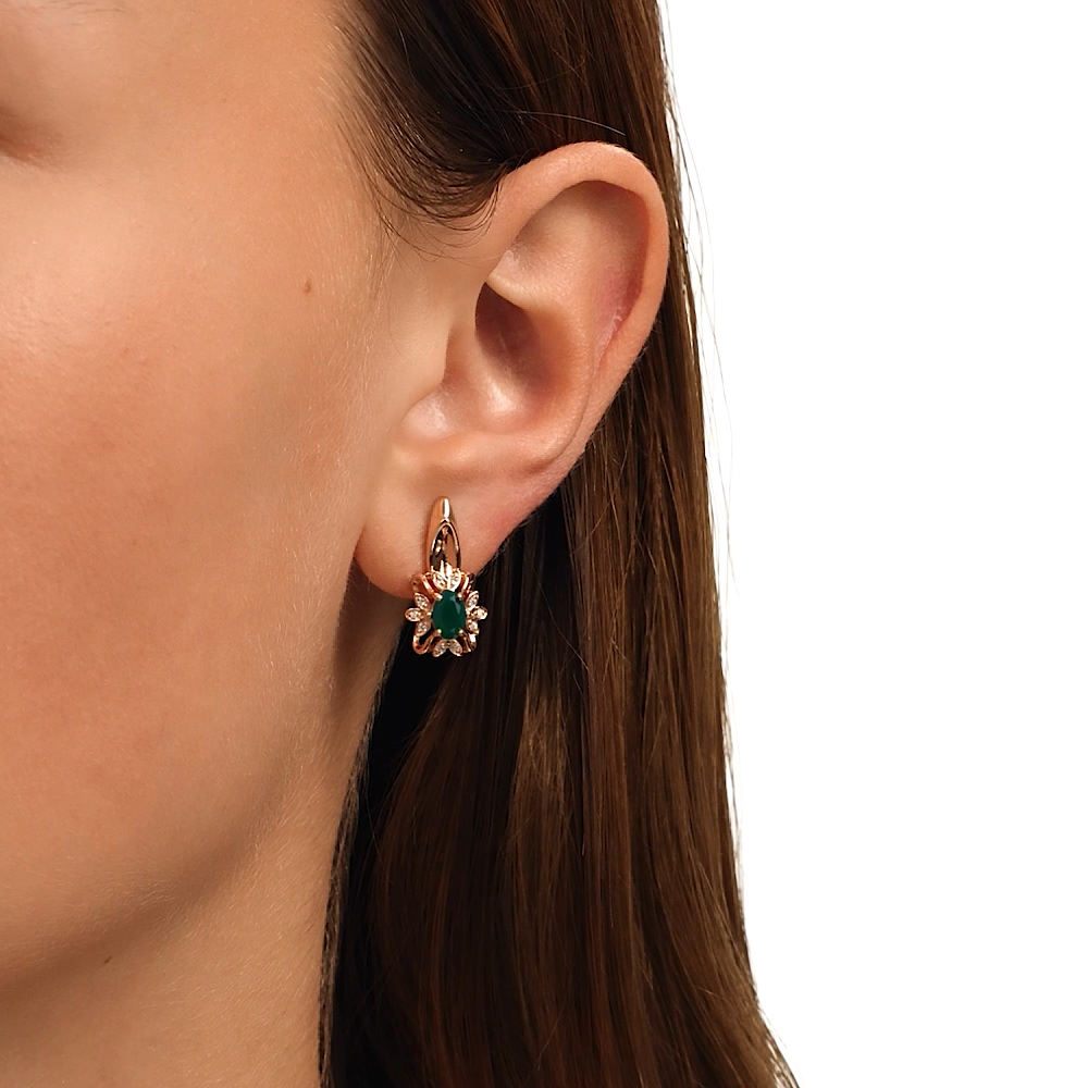 Серьги с 2 агатами зелеными природными;