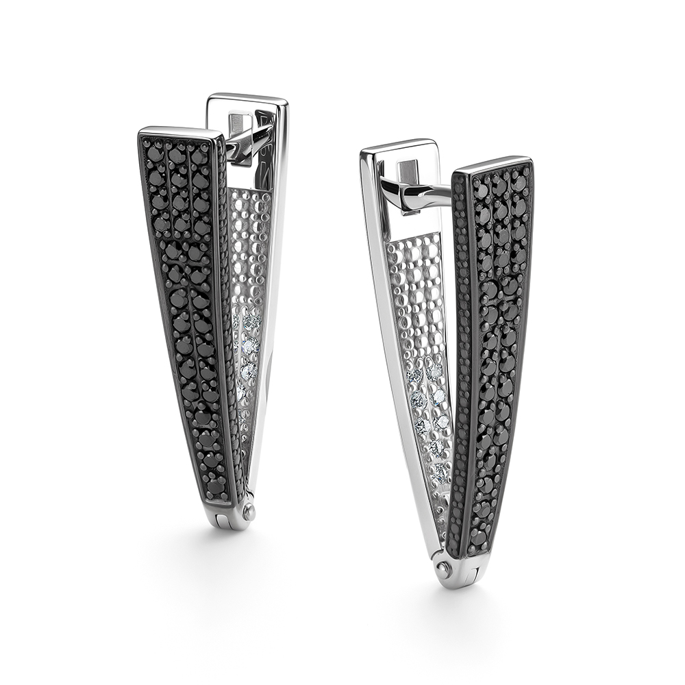 Золотые серьги с бриллиантами и бриллиантами чёрными природными