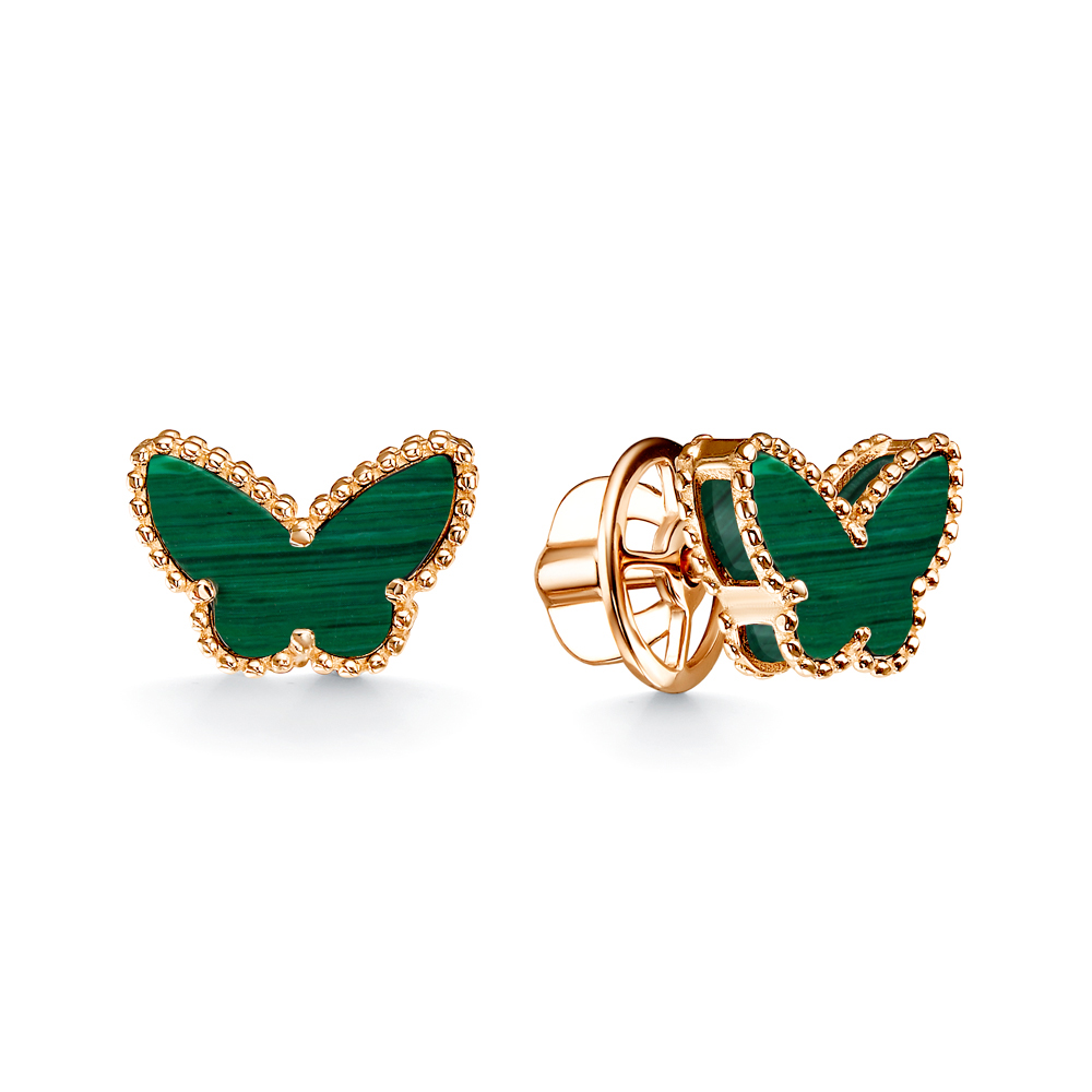 Золотые серьги с малахитами синтетическими