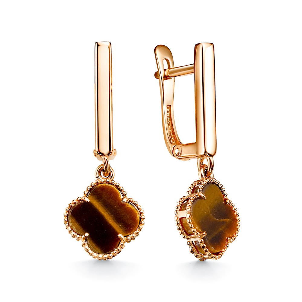 Серьги с 2 тигровыми глазами, 1.96 карат;