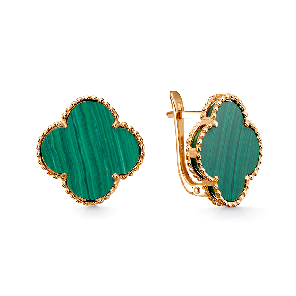 Серьги с 2 малахитами синтетическими, 5.66 карат;