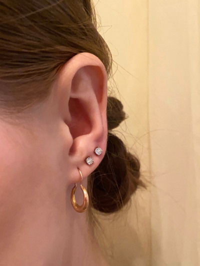 Цена приятная , за счет белого золота блеск ещё больше, красиво смотрится на ушке