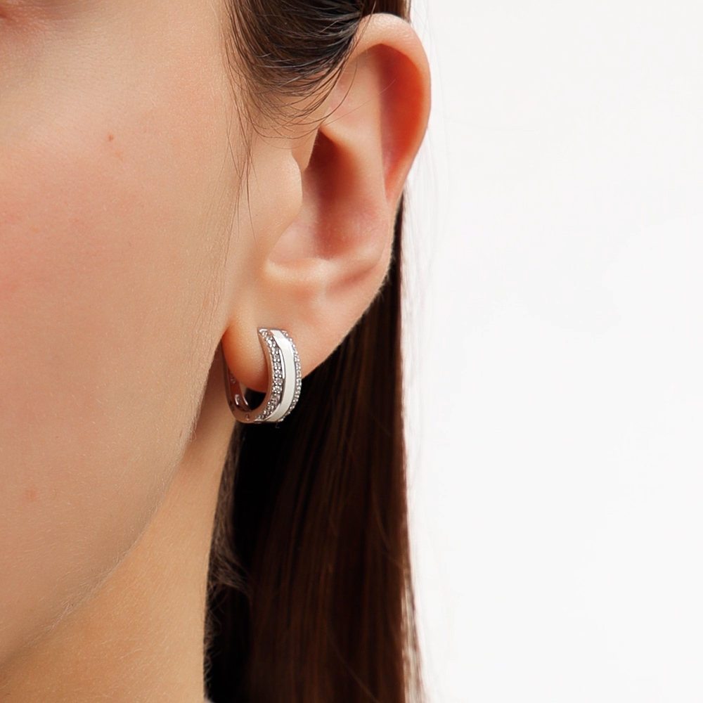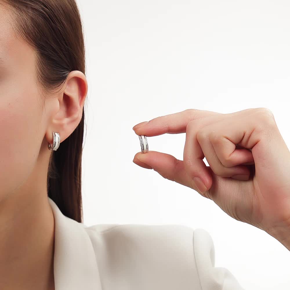 Серебряные серьги с эмалью и фианитами