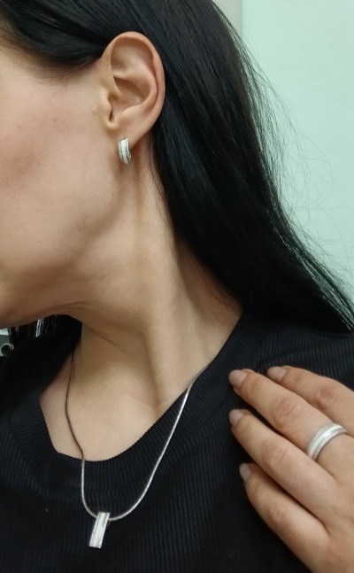Красивые милые серьги, не громоздкие, смотрятся аккуратно. Покупала в комплекте с кулоном (плюс цепочка плетение Снейк) и кольцом. Я очень довольна!!!