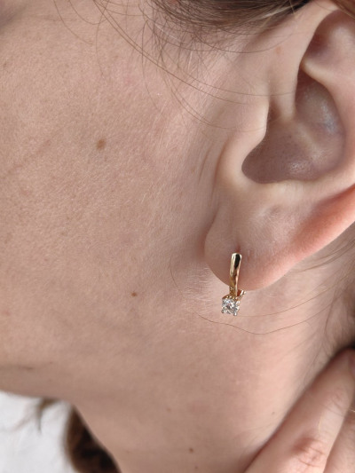 Серьги с 2 бриллиантами природными, 0.39 карат, огранка круг 57 граней, цвет 3, чистота 6, тип огранки А;