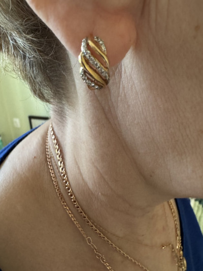 Муж подарил на годовщину брака.Ношу более трех лет.Сережки за это время вид не потеряли,замочек исправно работает.Вставки из фианита на месте.Хорошо смотрятся с повседневными классическими образами.Сочетаются практически со всеми изделиями из золота.К покупке рекомендую!
