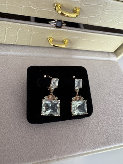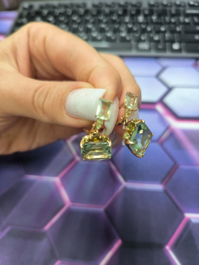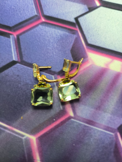 В редких случаях характеристики украшения или упаковка могут иметь отличия от представленных на фото или в описании.Серьги с 2 аметистами зелеными, 9.94 карат;