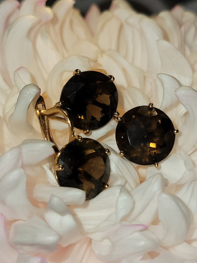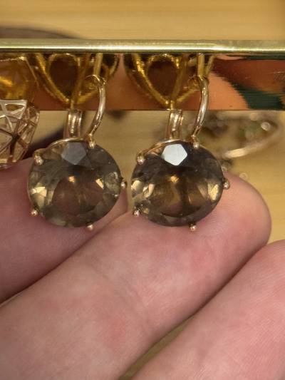 Золотые серьги с раухтопазами