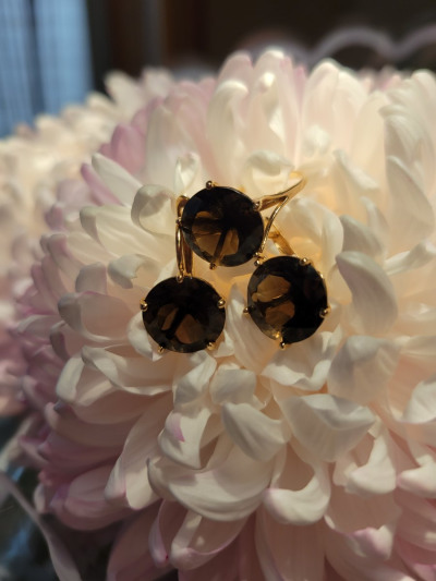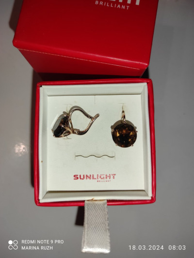 Заказала серьги к уже имеющемуся перстню с Раух топазом. Конечно на перстне совсем другая огранка и цвет камня более насыщенный ,и сам камень намного больше , но в общем комплект не плохо гармонирует. За эти деньги на повседневную носку серьги вполне достойны. Замок хороший.