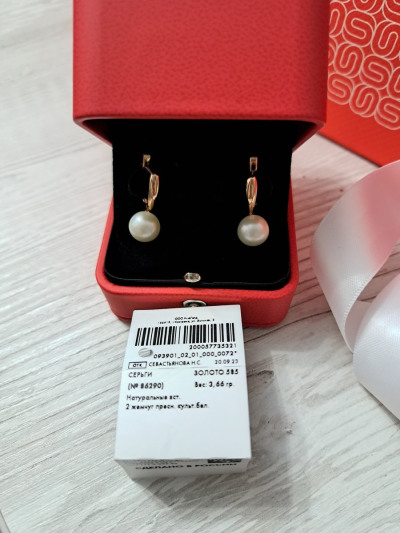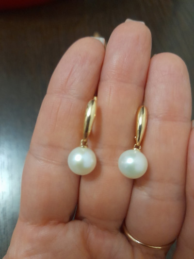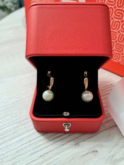 Подбирала серьги к жемчужному ожерелью с золотом. Подошли внешне идеально. Жемчуг крупный, ровный. По отзывам быстро перетирается петелька, на которой висит жемчуг, но мне так понравились, что я рискнула)