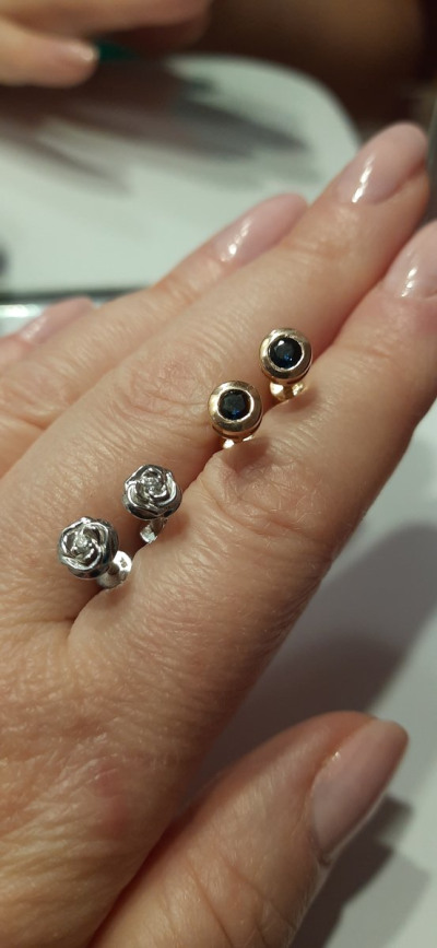 Понравились! Вес 1, 62 гр. Доставили курьером в назначенный день. Ранее покупала пусеты из белого золота в Санлайт, размер примерно одинаковый.