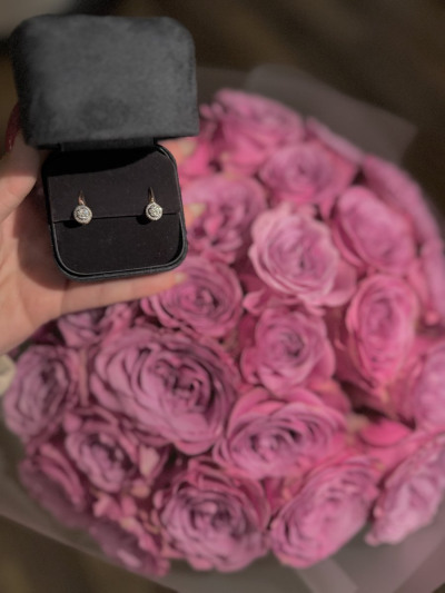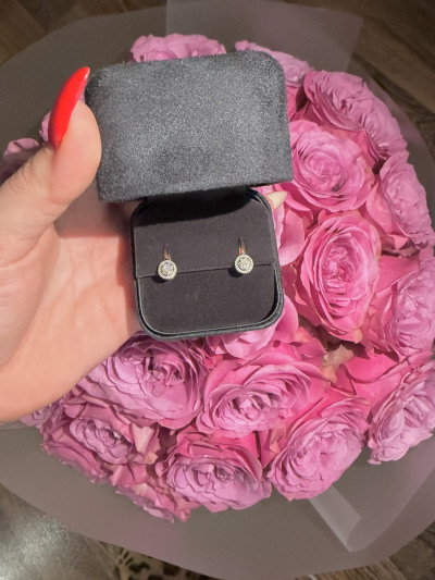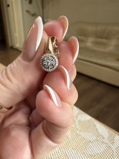 Серьги с 2 бриллиантами природными, 0.02 карат, огранка круг 57 граней, цвет 4, чистота 6;