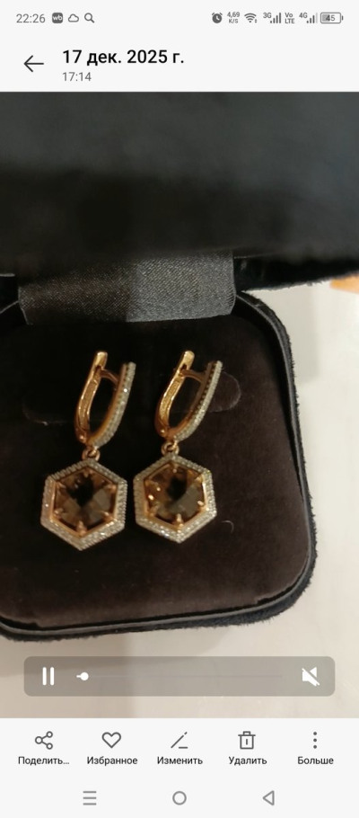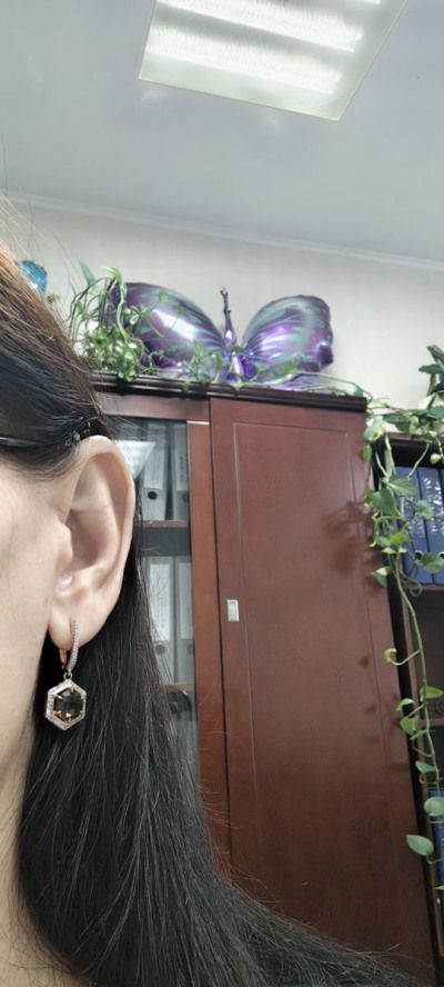 Жена очень довольна, она давно хотела с таким камнем. Элегантные серьги