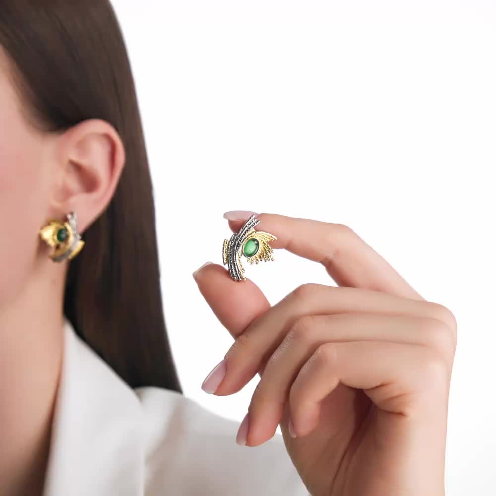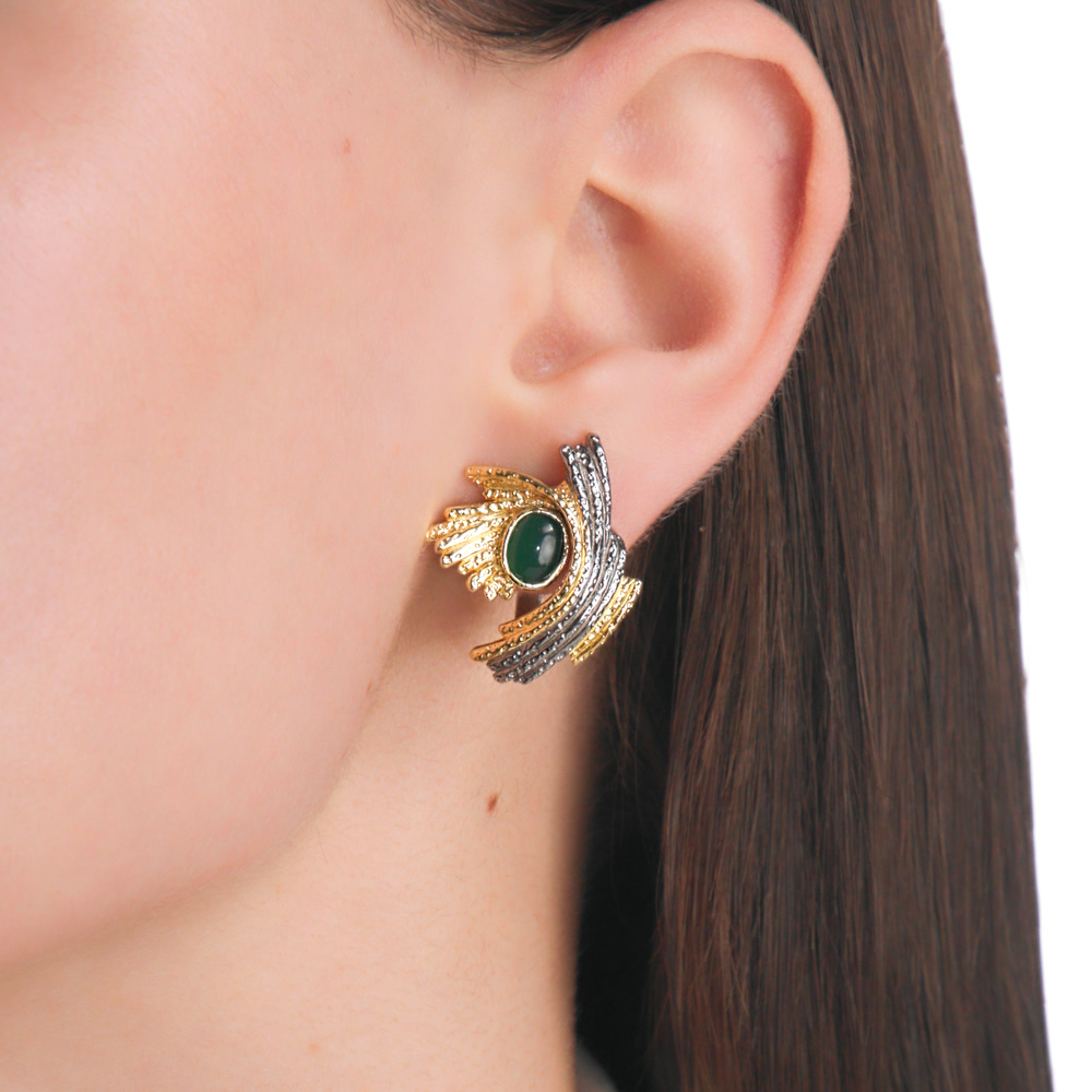 Серьги с 2 агатами зелеными природными;