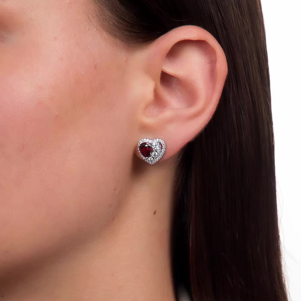 Серебряные серьги с фианитами и гранатами природными