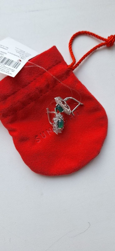 Купила эти серьги в комплект к кольцу. Очень довольна. Яркие натуральные Агаты в форме кобашен. Смотрятся великолепно. Не хуже изумрудов. Конечно, очень богатая оправа, сияющие фианиты, делают эти серьги изысканными.