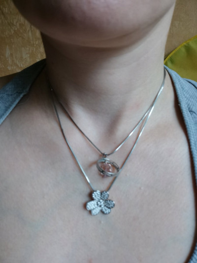 Купила в комплекте с кольцом, очень круто смотрятся. Подвеску перевесила на цепочку, а на тоненькую повесила подарочную подвеску и подарила племяшке. Все довольны)))