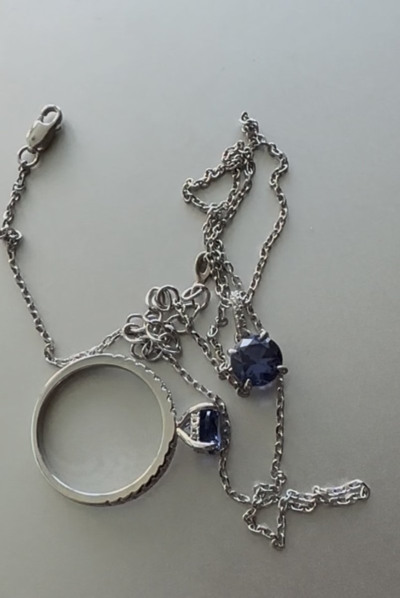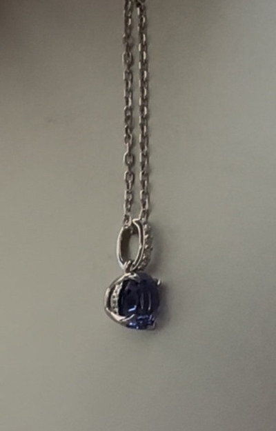 Очень красивое украшение! Цвет камня насыщенный и глубокий! Блестит и переливается, как белое золото с бриллиантами и танзанитом: очень удобно, что подвеску можно снять и поменять цепочку.