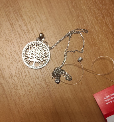 Классное шейное украшение. Фианитовые дорожки бликуют. Дерево всегда в тренде