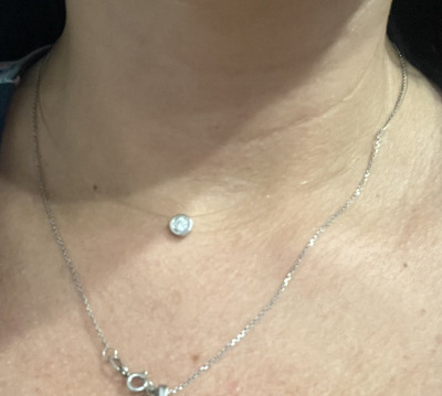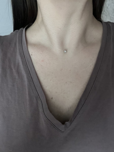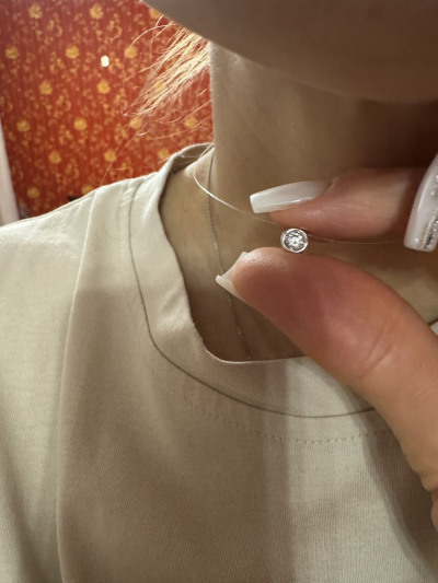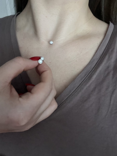 Маленькая красивая штучка, леска не видна и подвеска смотрится как микродермал. Камешек очень сверкающий. Спасибо.